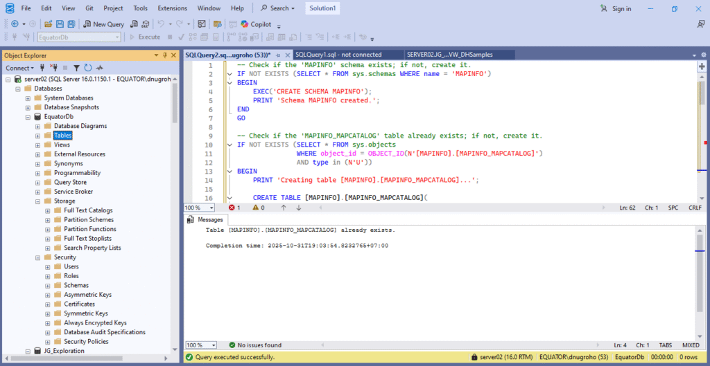 MapInfo Professional can connect to various RDBMS and store the spatial data in the database. In order to enable this feature, we need to create Mapinfo_Mapcatalog in the database. The mapinfo_mapcatalog is a special system table used by MapInfo Pro, particularly when you are working with spatial data stored directly in a remote database (like SQL Server, Oracle, or PostGIS). In this article, we will show you how to create this mapinfo_mapcatalog table. So if you are going to store the spatial datasets (points, line, and polygons) in the database, we need to create mapinfo_mapcatalog table in the database.